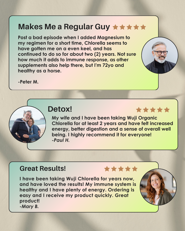 You’re not just paying for greens, you’re paying for absorption, and Wuji delivers. Our chlorella and spirulina are among the most bioavailable on the market, meaning your body can actually use what you’re taking.